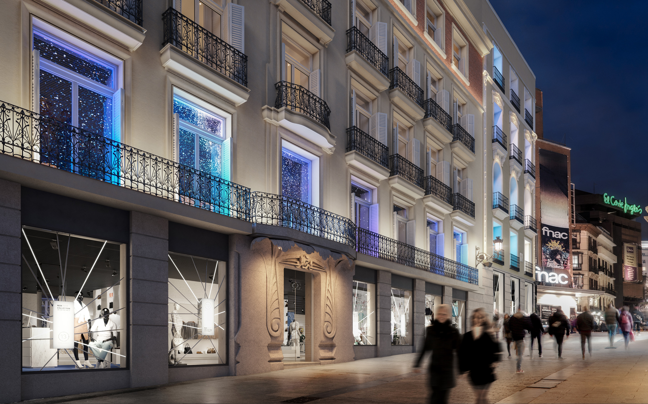 Recibimos este encargo de Grupo Baraka, confirmado por Hines tras su compra, iniciando los trabajos con un Plan Especial sobre el edificio Preciados 13 con un doble objeto: la descatalogación y supresión de la escalera protegida y la implantación del uso terciario clase comercial en situación de edificio exclusivo.