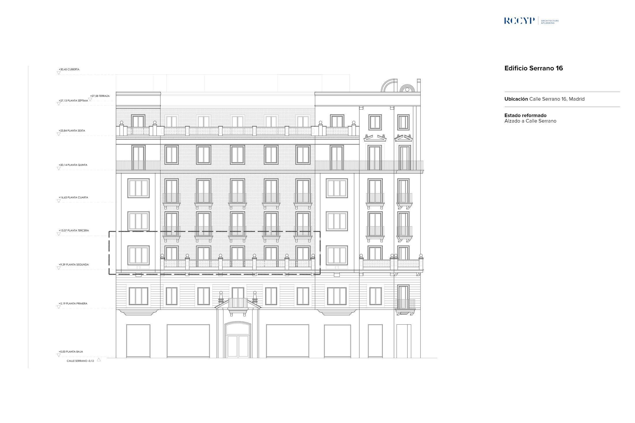 El resultado, un edificio clásico con el formato y elementos protegidos propios del proyecto de expansión del Marqués de Salamanca, tipológico en la zona, pero actualizado en imagen, instalaciones, domótica y efectividad a un espacio de oficinas de vanguardia.