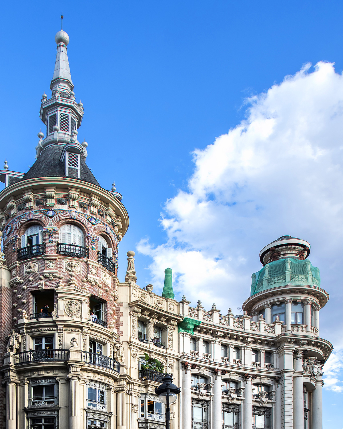 El resultado es esta construcción tan espectacular: la combinación de diferentes tipologías arquitectónicas, populares, góticas y renacentistas. La rica ornamentación que luce el edificio Canalejas 3 se ve en cada detalle de la fachada: medallones, rosetones, escudos, columnas, pilastras, barandillas y balcones, torreones o en la terraza. El arquitecto supo armonizar distintos materiales; como el ladrillo, la cerámica, la piedra, el metal o la madera, decorando cada uno de ellos de forma magistral.
